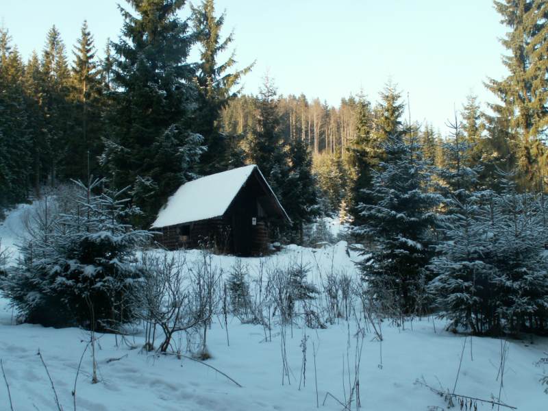 Poslední den našeho pobytu na horách se udělalo opět nádherně, tak jsme vyrazili na rozlučkový výlet se zimou :-) Původně jsme chtěli dojít až na Skřítka, ale protože nám poněkud trvalo, než jsme se vyhrabali a nechtěli jsme zatmět v lese, dali jsme si pouze 12 kiláků k Hubertovi a zpět :-)))